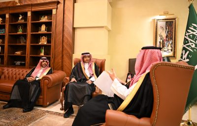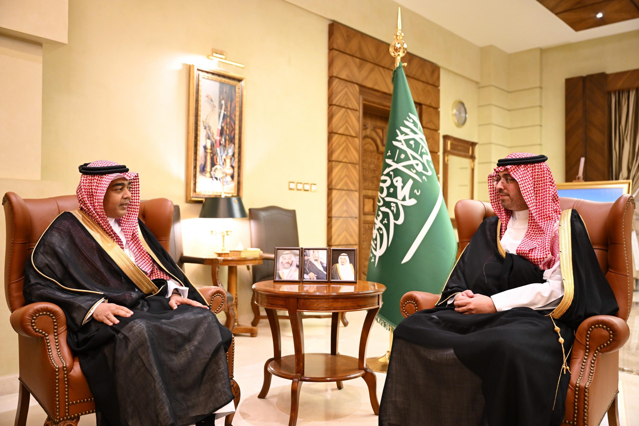 استقبل صاحب السمو الأمير سعود بن عبدالله بن جلوي محافظ جدة, بمكتبه اليوم, المدير الإقليمي للمنطقة الغربية لبنك التنمية الاجتماعية المهندس رامي بن حمزة أبو الجدايل, يرافقه مدير عام فرع بنك التنمية الاجتماعية بجدة سمير بن علي الغامدي.