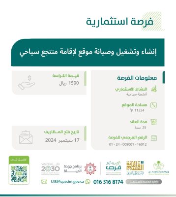 أمانة القصيم تطرح عددًا من الفرص الاستثمارية في مجال الأنشطة السياحية في مدينة بريدة