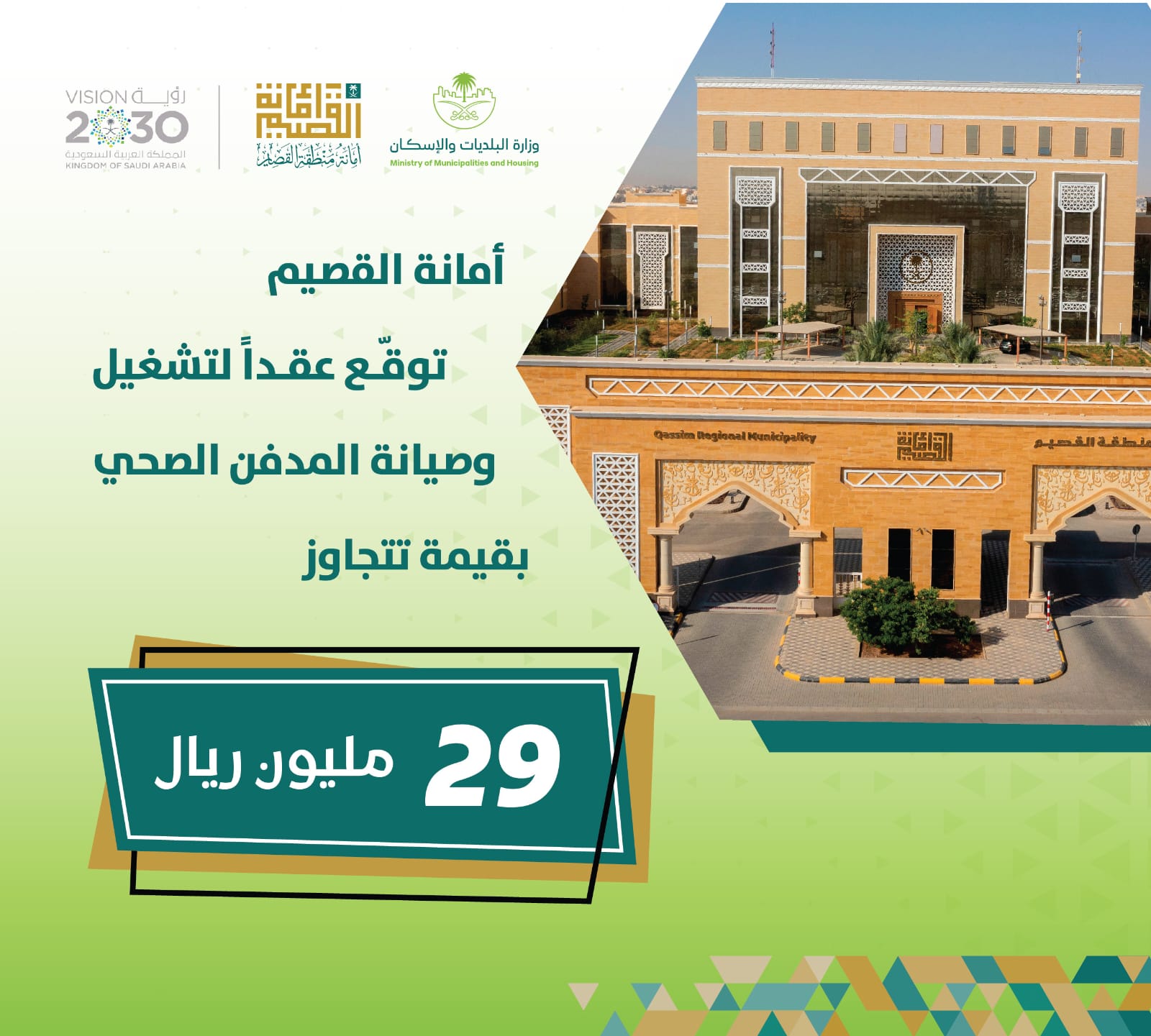 أمانة القصيم توقّع عقدًا لتشغيل وصيانة المدفن الصحي بقيمة تتجاوز 29 مليون ريال.