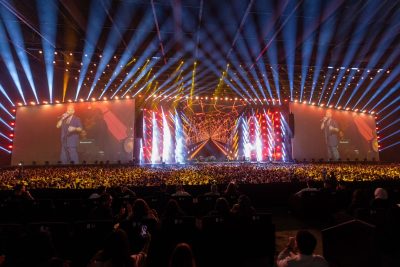 وفي ختام الحفل توجه نجمي الحفل بالشكر إلى معالي المستشار تركي بن عبد المحسن آل الشيخ رئيس الهيئة العامة للترفيه على ما يقدمه من افكار وإبداعات ويقوم به من جهود بقطاع صناعة الترفيه في ظل دعم القيادة الرشيدة – وفقها الله-، ولشركة “بنش مارك” على التنظيم