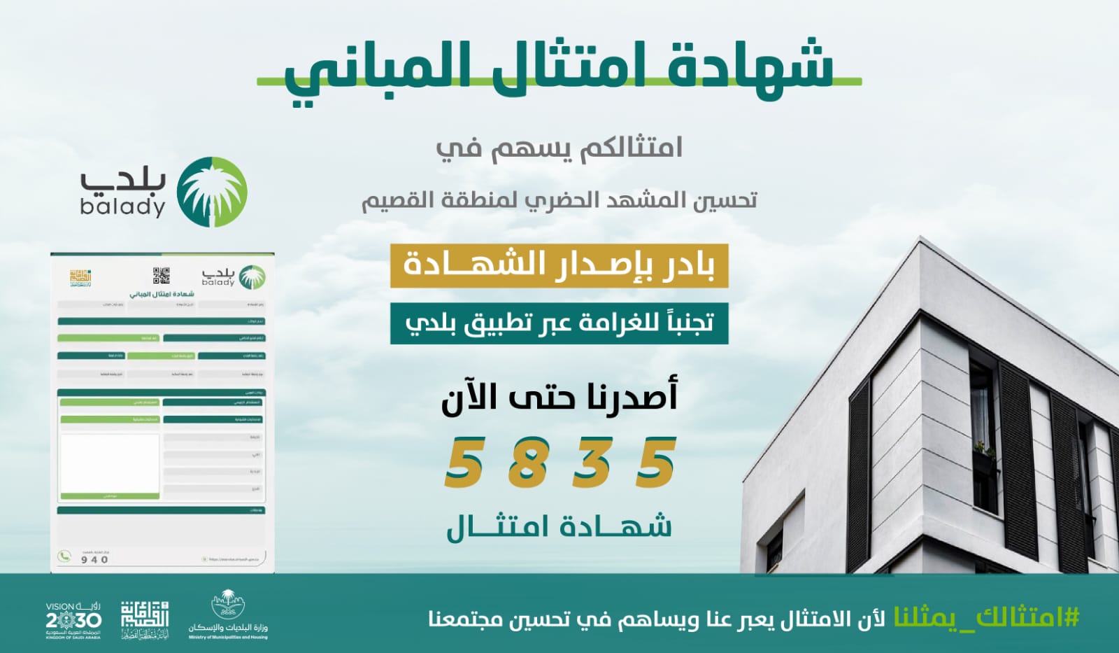 أمانة القصيم تصدر أكثر من 5800 شهادة امتثال للمباني