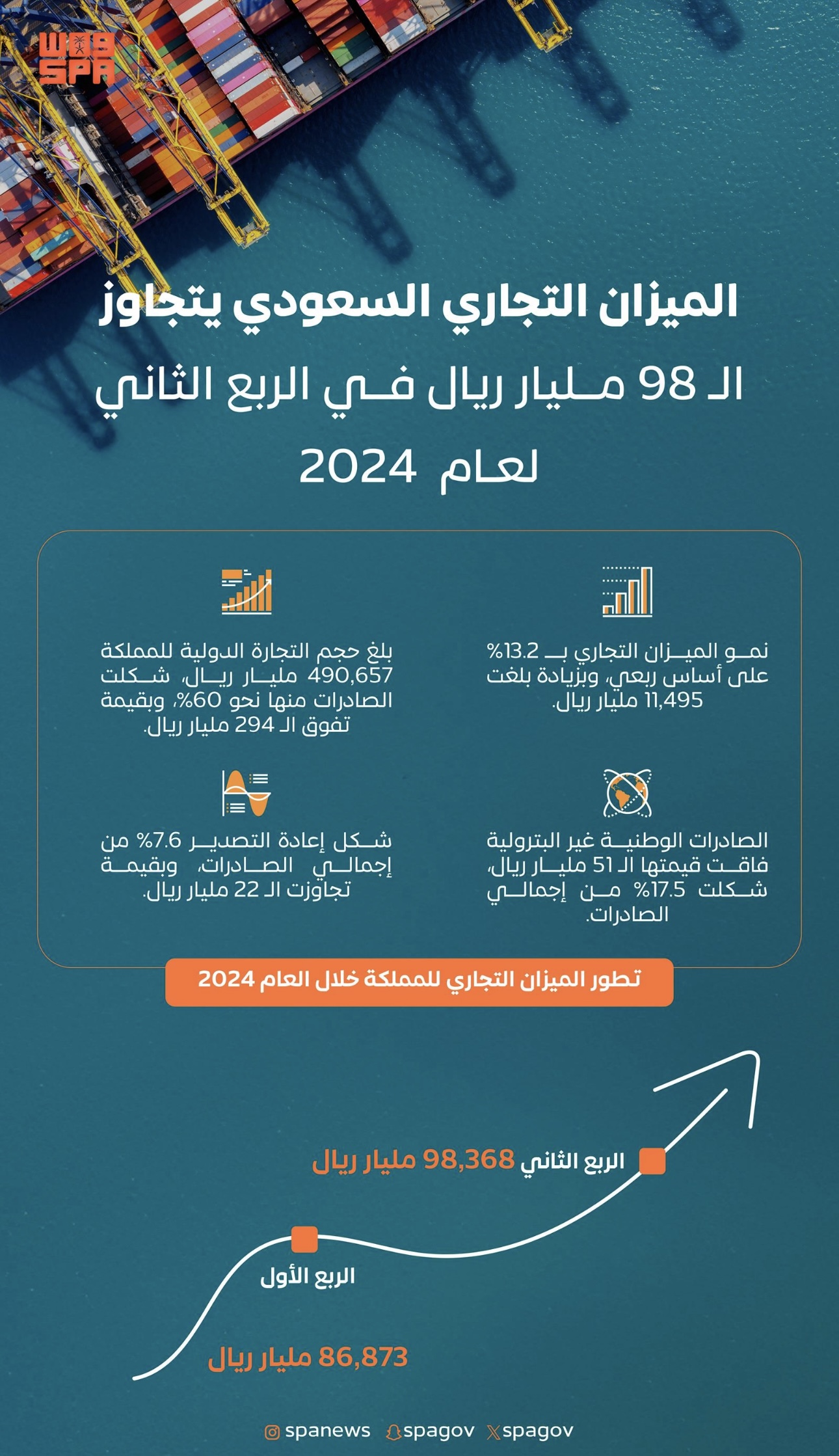 الميزان التجاري السعودي يتجاوز الـ 89 مليار ريال في الربع الثاني 2024
