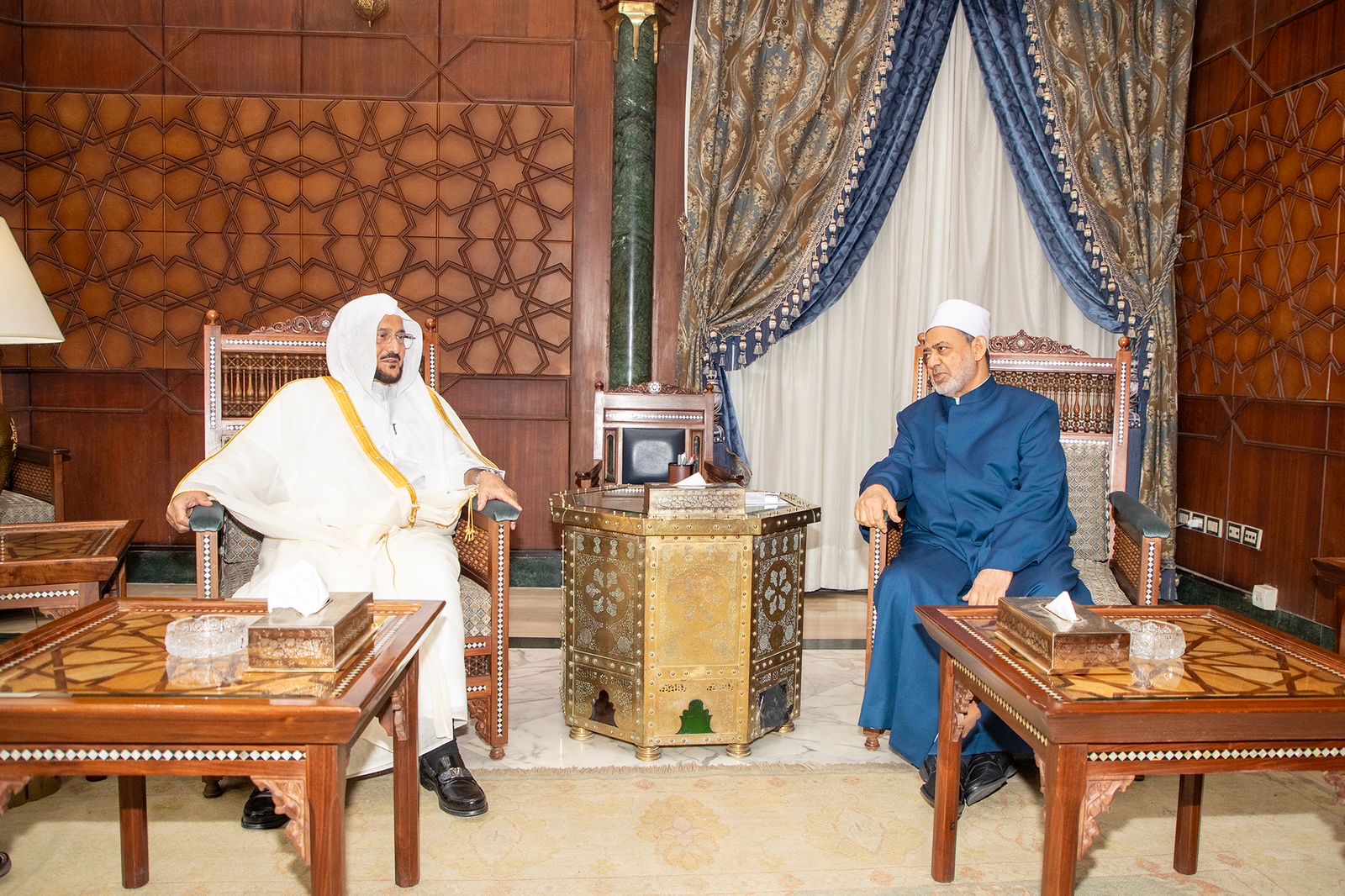 كما استقبل فضيلة شيخ الأزهر الدكتور أحمد الطيب، معالي وزير الشؤون الإسلامية والدعوة والإرشاد الشيخ الدكتور عبداللطيف بن عبدالعزيز آل الشيخ، بحضور سفير خادم الحرمين الشريفين لدى مصر صالح بن عيد الحصيني.