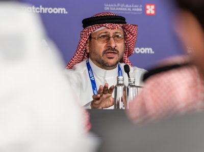 من جهة أخرى، عقدت اللجنة المنظمة لبطولة الماسترز السعودية للسنوكر، مساء اليوم الاثنين، مؤتمرًا صحفيًا، بحضور كل من: رئيس الاتحاد السعودي للبلياردو والسنوكر الدكتور ناصر الشمري، وأسطورة السنوكر الإنجليزي روني أوسوليفان، إلى جانب مواطنه المصنف الأول عالميًا جود ترامب، وسايمون براونيل، الرئيس التنفيذي للجولة العالمية للسنوكر، وإيميلي فريزر، الرئيس التنفيذي لشركة ماتش روم للرياضة، بالإضافة إلى حضور وسائل الإعلام المحلية والإقليمية والدولية.