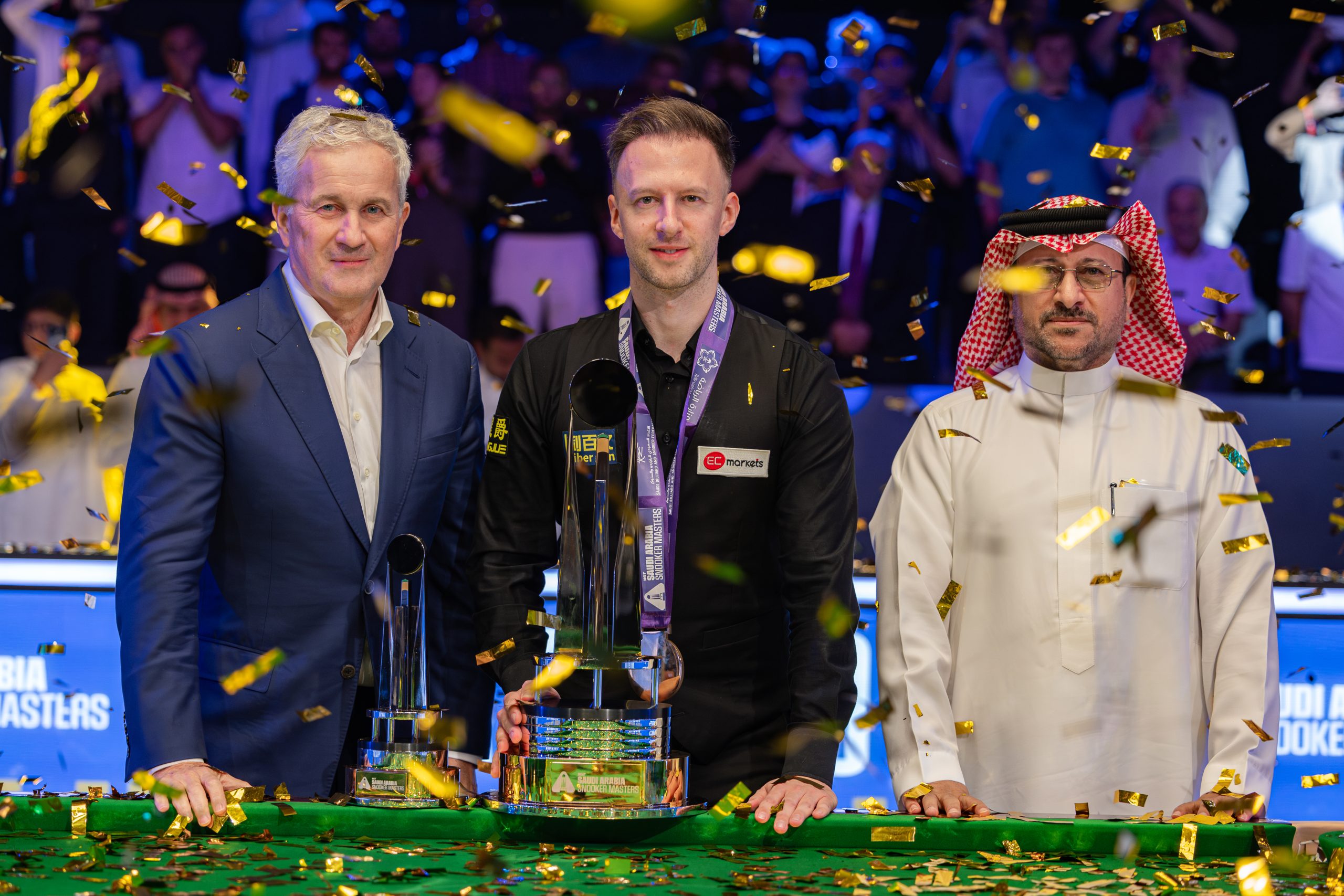 وتوج رئيس الاتحاد السعودي للبلياردو والسنوكر؛ الدكتور ناصر الشمري، اللاعب الإنجليزي جود ترامب بكأس البطولة، بعد فوزه في المباراة النهائية على الويلزي مارك ويليامز، بطل العالم ثلاث مرات سابقة، بعد مواجهة ماراثونية استمرت لمدة 9 ساعات، خاض فيها النجمان 19 شوطاً.