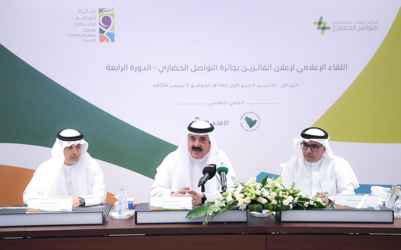 أعلن مركز الملك عبد العزيز للتواصل الحضاري، أسماء الفائزين في ”جائزة التواصل الحضاري ” بدورتها الرابعة للعام 2024م، خلال اللقاء الإعلامي الذي أقامه بمقره في الرياض، اليوم، بحضور لأمين العام للمركز الدكتور عبد الله الفوزان، ونائب الأمين العام الأستاذ إبراهيم العسيري، وعدد من ممثلي وسائل الإعلام المختلفة.