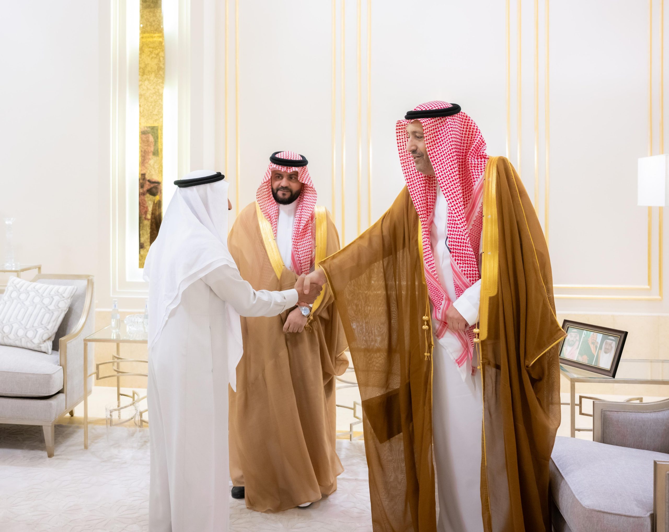 الباحة – استقبل صاحب السمو الملكي الأمير الدكتور حسام بن سعود بن عبدالعزيز أمير منطقة الباحة ، في مكتبه بالإمارة، اليوم، الرئيسَ التنفيذي لهيئة تطوير وتعمير المناطق الجبلية بجازان المهندس ظافر بن عايض الفهاد، والرئيس التنفيذي للمكتب الإستراتيجي لتطوير منطقة الباحة المهندس عبدالعزيز بن محمد النعيم .