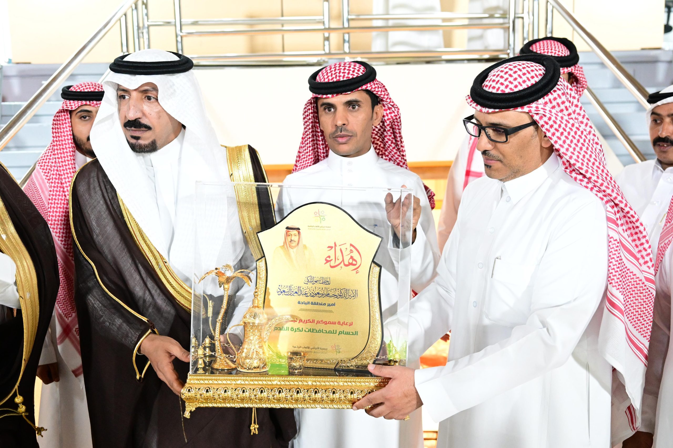 الباحة – برعاية صاحب السمو الملكي الأمير الدكتور حسام بن سعود بن عبدالعزيز أمير منطقة الباحة ، اختتمت منافسات بطولة الحسام لكرة القدم للمحافظات التي فرع وزارة الرياضة بمنطقة الباحة وجمعية الأبرشي للألعاب الرياضية ، وبمشاركة 6 محافظات ، وذلك على استاد مدينة الملك سعود الرياضية بالباحة.