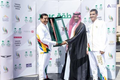 وتسلّم نائب أمير المنطقة شعلة الدورة من الشاعر عبد الله الشريف، كاتب أوبريت مهرجان الجنادرية، وتناوب على حمل الشعلة لاعب التايكوندو محمد مداوي، الحاصل على ذهبية دورة الألعاب السعودية 2023، وبطل المملكة والعرب، وخامس العالم.