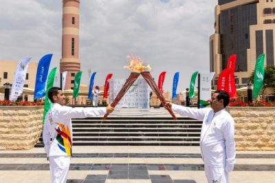 كما انتقلت الشعلة إلى أبرز المعالم السياحية في منطقة عسير “قرية آل خلف التراثية”، وحمل الشعلة العداء حامد البيشي، الفائز بذهبية التتابع في دورة الألعاب الآسيوية في بوسان 2002، وذهبية بطولة آسيا “تتابع” بالدوحة 2006، وذهبية أسياد آسيا 400 متر تتابع في غوانزو 2010. ثم حملت الشعلة بعد ذلك لاعبة المبارزة العنود الشريف، الحاصلة على ذهبية بطولة نادي القادسية الكويتي الصيفية وحققت ذهبية البطولة الدولية بالكويت وشاركت بالعديد من بطولات المبارزة للسيدات بالمملكة وحققت مراكز متقدمة.