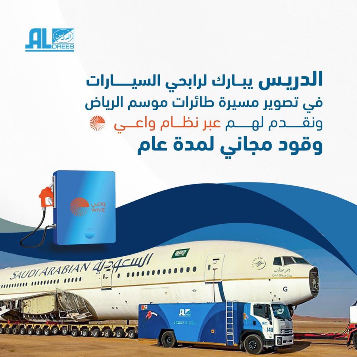 أعلنت شركة الدريس للخدمات البترولية والنقليات، عن تقديم هدية للفائزين في مسابقة تصوير مسيرة الطائرات، التي أطلقها معالي المستشار تركي آل الشيخ، رئيس الهيئة العامة للترفيه، لتحفيز المواطنين على التفاعل مع موكب الطائرات التي تم نقلها برا من جدة إلى الرياض، للمشاركة في فعاليات موسم الرياض.