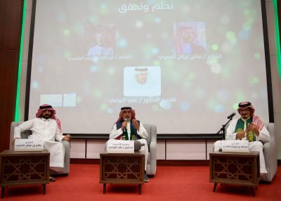بعد ذلك انطلقت الأمسية الشعرية بعنوان : “نحلم ونحقق” أدارها الدكتور علي الرباعي وضيفيه الكرام الشاعر صالح بن غيثان العمري والشاعر عبدالله بن سويلم الغامدي ، وقد تناول الشاعرين عدد من القصائد الوطنية في حب القيادة وتلاحم الشعب ومنجزات الوطن العظيمة والتنمية في كافة المجالات