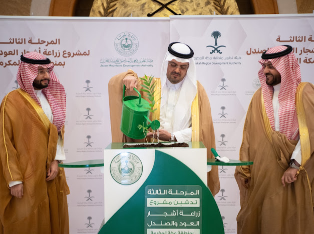 دشّن نائب أمير منطقة مكة المكرمة صاحب السمو الملكي الأمير سعود بن مشعل بن عبد العزيز في مقر الإمارة بجدة، المرحلة الثالثة لمشروع أشجار العود والصندل بمحافظات المنطقة، والذي تنفذه هيئة تطوير وتعمير المناطق الجبلية بجازان بالشراكة مع هيئة تطوير منطقة مكة المكرمة.