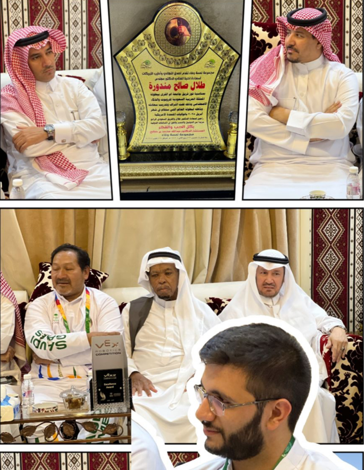 احتفت مجموعة لمسة وفاء، يوم الخميس ٢١ ربيع الثاني، الموافق ٢٤ أكتوبر، في ديوانية آل بن صالح بمكة المكرمة، بفريق الروبوت والذكاء الاصطناعي بجامعة أم القرى، الذي فاز بالمركز الأول على مستوى المملكة وتأهل للمشاركة في بطولة العالم المقررة إقامتها في الولايات المتحدة الأمريكية عام ٢٠٢٥. حضر الاحتفال عدد من المسؤولين والأعيان في مكة المكرمة.