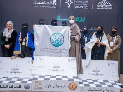 وحققت طالبة جامعة الأميرة نورة بنت عبدالرحمن اللاعبة مشاعل التميمي المركز الأول وكأس البطولة والميدالية الذهبية, في بطولة الشطرنج للطالبات, التي استضافتها جامعة الملك خالد بأبها, بمشاركة 108 طالبات من 30 جامعة.