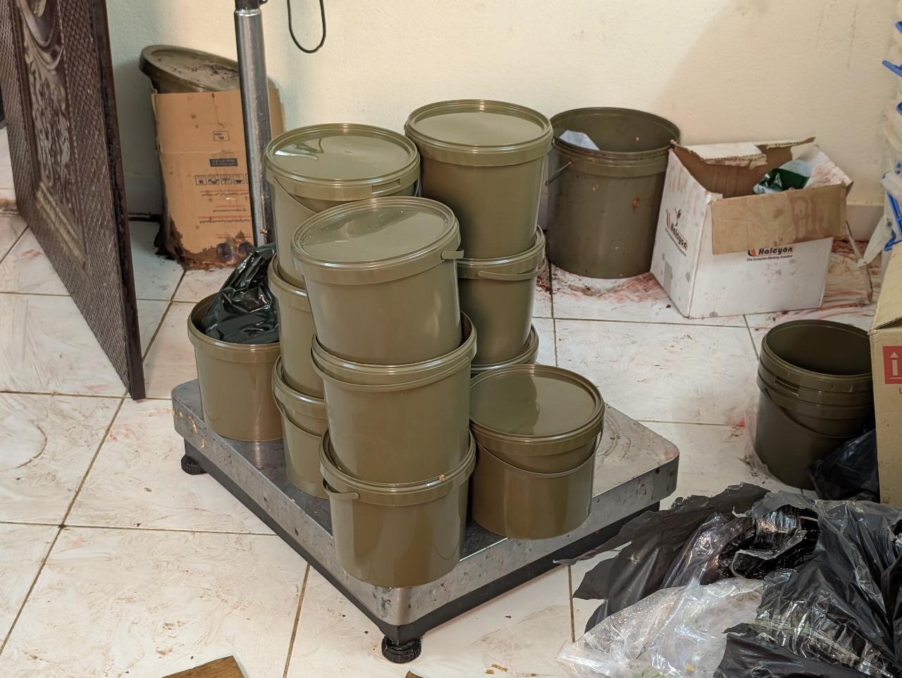 وأوضحت الأمانة أن الفرق الميدانية التابعة لها، بالتعاون مع فرق الضبط الميداني وهيئة الزكاة والضريبة والجمارك، داهمت الموقع وصادرت 1298.8 لترًا من الجلسرين مجهول المصدر، و68.2 كيلوغرامًا من المعسل الجاهز، و284 لترًا من نكهات مجهولة المصدر بعضها منتهية الصلاحية، إضافة إلى 5,816 وحدة من العبوات والأكياس الفارغة، شملت سطولًا كبيرة وصغيرة وعبوات بلاستيكية.