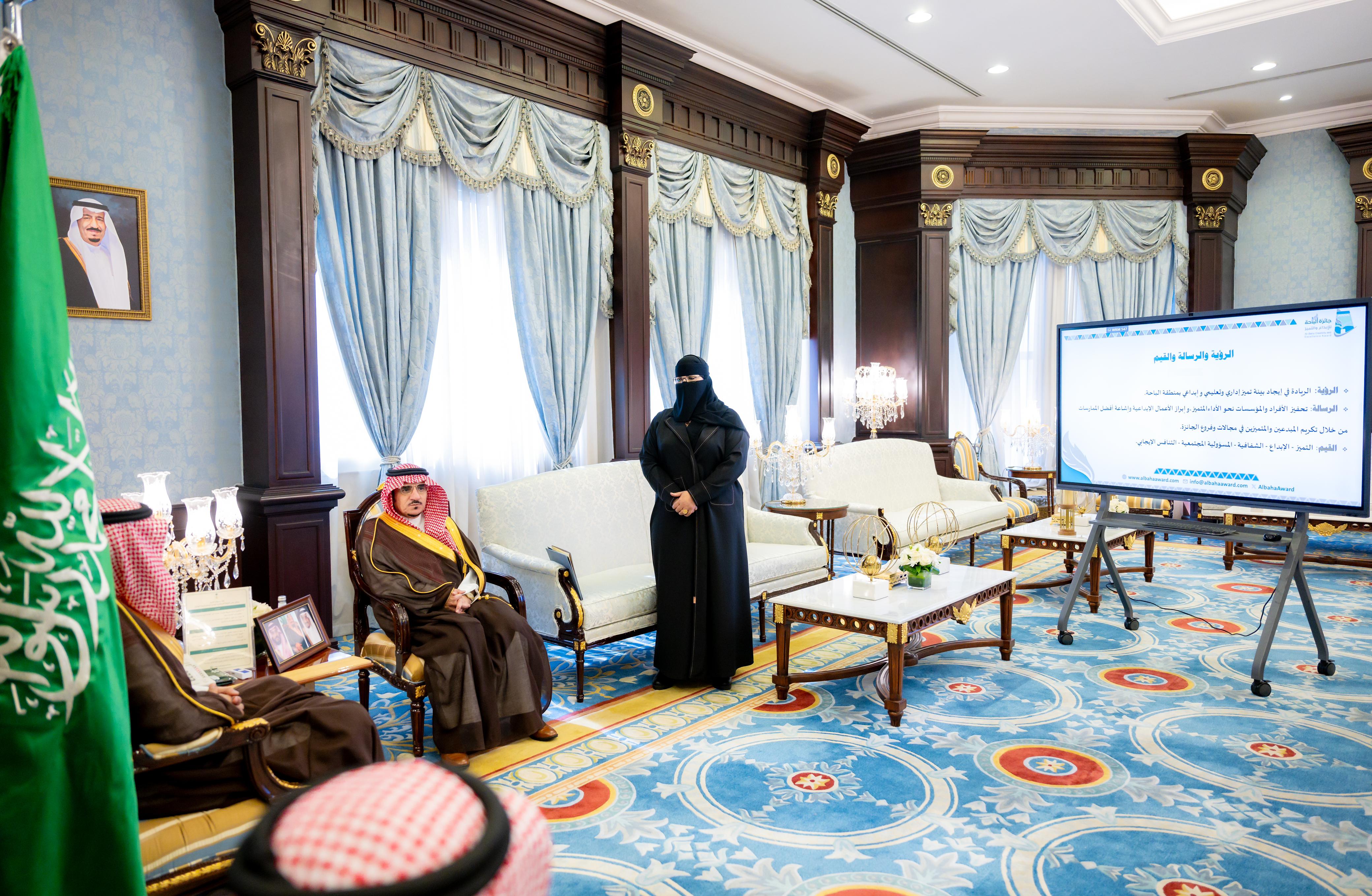 الأمير حسام بن سعود يطلع على أعمال جائزة الباحة للإبداع والتميز