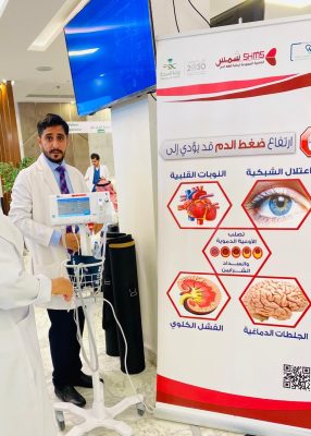 بالتعاون مع الجمعية السعودية لرعاية ضغط الدم (شمس)، نفذ قسم الباطنة بمستشفى الملك فهد بجدة فعالية صحية بعنوان “أفحص ضغطك وتحكم به تحمي قلبك”.