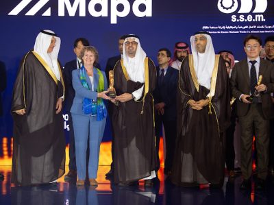 وحصد الجائزة الكُبرى المبتكر “لي نوانغ سيم” من جامعة نانيانغ التكنولوجية بسنغافورة، عن مشروعه “كشف قوة التناضح العكسي بالطرد المركزي”، والمبتكرة سو ميكام من شركة NALA Membranes من الولايات المتحدة الأمريكية، عن مشروعها “أغشية مركبة رقيقة من مادة البولي سلفون الجديدة لتحلية المياه وإعادة استخدام مياه الصرف”.