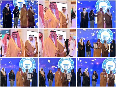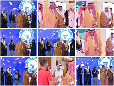 وتسلّم سموه شهادة موسوعة “غينيس” التي حصل عليها المؤتمر نتيجة تحقيقه أكبر عدد حضور لجلسات الأبحاث العلمية.