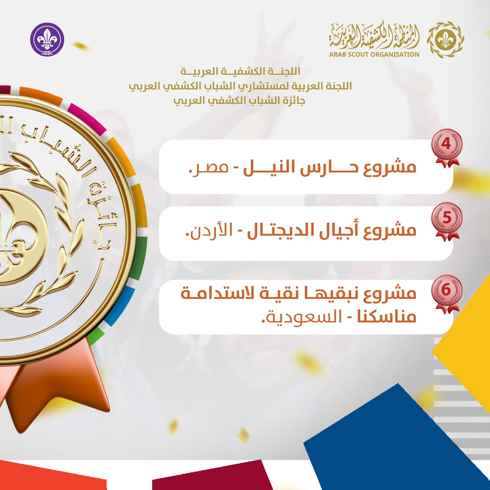 حققت جمعية الكشافة العربية السعودية، المركزين الثالث والسادس في “جائزة الشباب الكشفي العربي” التي نظمتها المنظمة الكشفية العربية – الإقليم الكشفي العربي- وتقدم لها 42 مشروعاً من 11 جمعية كشفية عكسوا من خلالها إبداع الشباب الكشفي العربي والتزامهم وقدرتهم على قيادة جمعياتهم الوطنية نحو عالم يسوده السلام والازدهار لجميع الناس على كوكب صحي متجدد، وعلى النحو المتصور في أكثر من خطة طموحة ومنها تحقيق اهداف التنمية المستدامة.