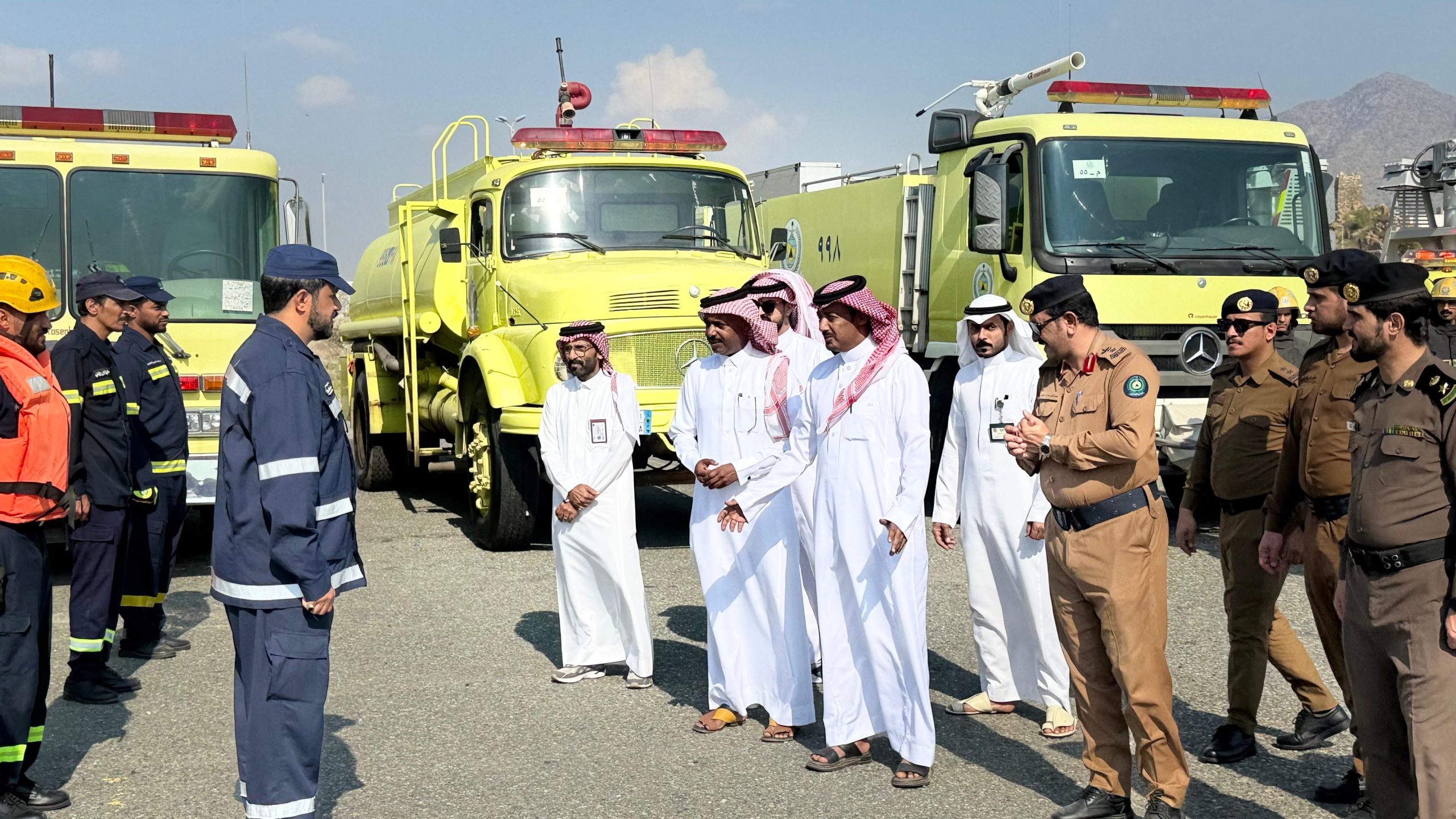 بعد ذلك أنتقل الجميع إلى موقع تنفيذ الفرضية بالساحة الشعبية المجاورة لجامع سارة العجمي وتم استعراض الآليات والمعدات المشاركة بحضور مدراء الجهات المشاركة من المحافظة والشرطة والبلدية والدوريات الأمنية وقسم المرور والهلال الأحمر والقطاع الصحي وشركة الكهرباء والمياه وفرع وزارة النقل .