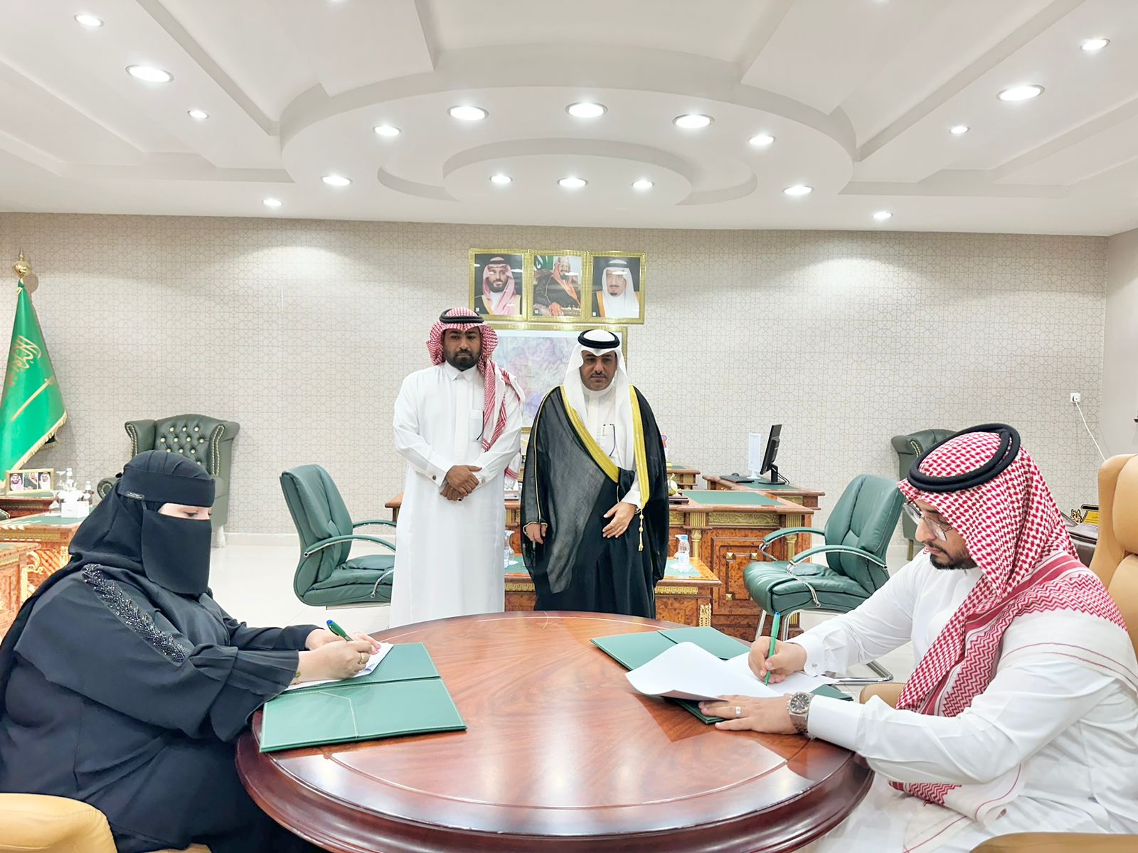 قلوة – شهد سعادة محافظ قلوة الأستاذ علي بن احمد الشهري صباح اليوم بمكتبه في المحافظة توقيع عقد شراكة مجتمعية بين لجنة شؤون الأسرة بالمجلس المحلي وبين جمعية يشفين الصحية بالمحافظة