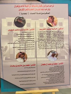شهد الحفل مشاركات شعرية مميزة، حيث ألقى الشاعر الأستاذ الدكتور عبدالواحد بن سعود الزهراني قصيدة حازت إعجاب الحضور، تبعه الشاعر خالد بن ناصر غميص بعدة قصائد من نظمه. كما ألقى الشاعر عطية محمد آل طجمان ثلاث قصائد، والشاعر محمد خاتم بخات قصيدة بهذه المناسبة وأخرى من إبداعاته.