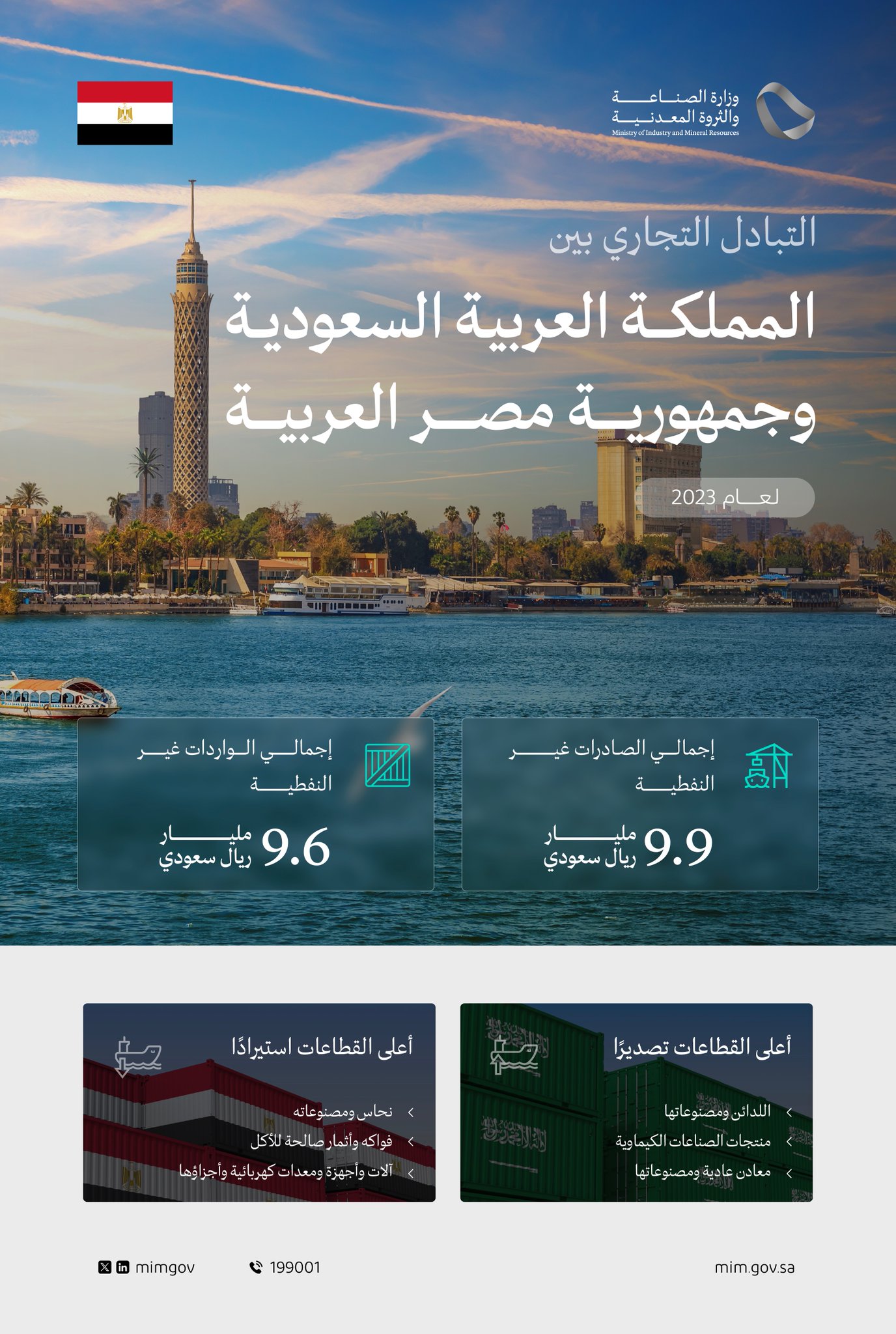 بدأ معالي وزير الصناعة والثروة المعدنية الأستاذ بندر بن إبراهيم الخريّف اليوم زيارة رسمية إلى جمهورية مصر العربية تهدف إلى تعزيز الروابط الثنائية الاقتصادية وتطوير التعاون المشترك في قطاعي الصناعة والتعدين وبحث الفرص الاستثمارية المتبادلة في القطاعات الصناعية الإستراتيجية الواعدة وفي مقدمتها الأغذية والأدوية يرافقه معالي نائب وزير الصناعة والثروة المعدنية لشؤون الصناعة المهندس خليل بن سلمة ومعالي الرئيس التنفيذي لبنك التصدير والاستيراد السعودي المهندس سعد الخلب والرئيس التنفيذي لهيئة تنمية الصادرات السعودية المهندس عبدالرحمن الذكير ويعقد الخريف خلال الزيارة اجتماعات رسمية مع مسؤولين حكوميين لبحث فرص تنمية العلاقات الثنائية بين البلدين كما تشهد الزيارة سلسلة من اللقاءات الثنائية مع قادة شركات القطاع الخاص بجمهورية مصر العربية لاستعراض الفرص النوعية في القطاع الصناعي السعودي والمزايا التنافسية لبيئة الاستثمار في المملكة إضافة إلى الممكنات والحوافز التي تقدمها المملكة للمستثمرين وتشمل الزيارة عددًا من المشاريع الصناعية المهمة في عدة قطاعات منها زيارة مشروع مصنع بيتي “المراعي” في محافظة البحيرة شمال مصر للاطلاع على تجربة المشروع في تنمية المجتمعات المحلية وتوطين سلاسل الإمداد إلى جانب زيارة عددٍ من مصانع الأدوية للاطلاع على التجربة المصرية في تصنيع الأدوية وتأتي الزيارة الرسمية الحالية لمعالي وزير الصناعة والثروة المعدنية إلى مصر امتدادًا لزياراته السابقة إليها وذلك لمتابعة منجزات الاتفاقيات ومذكرات التفاهم المبرمة خلال الزيارات المتبادلة بين الجانبين سعيًا إلى تحقيق نتائج ملموسة تواكب العلاقات الإستراتيجية والمتميزة بين المملكة ومصر ، يذكر أن إجمالي الصادرات السعودية غير النفطية إلى مصر خلال عام 2023 بلغ 9.9 مليارات ريال سعودي بينما وصل إجمالي الواردات غير النفطية من مصر خلال العام نفسه إلى 9.6 مليارات ريال سعودي .