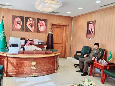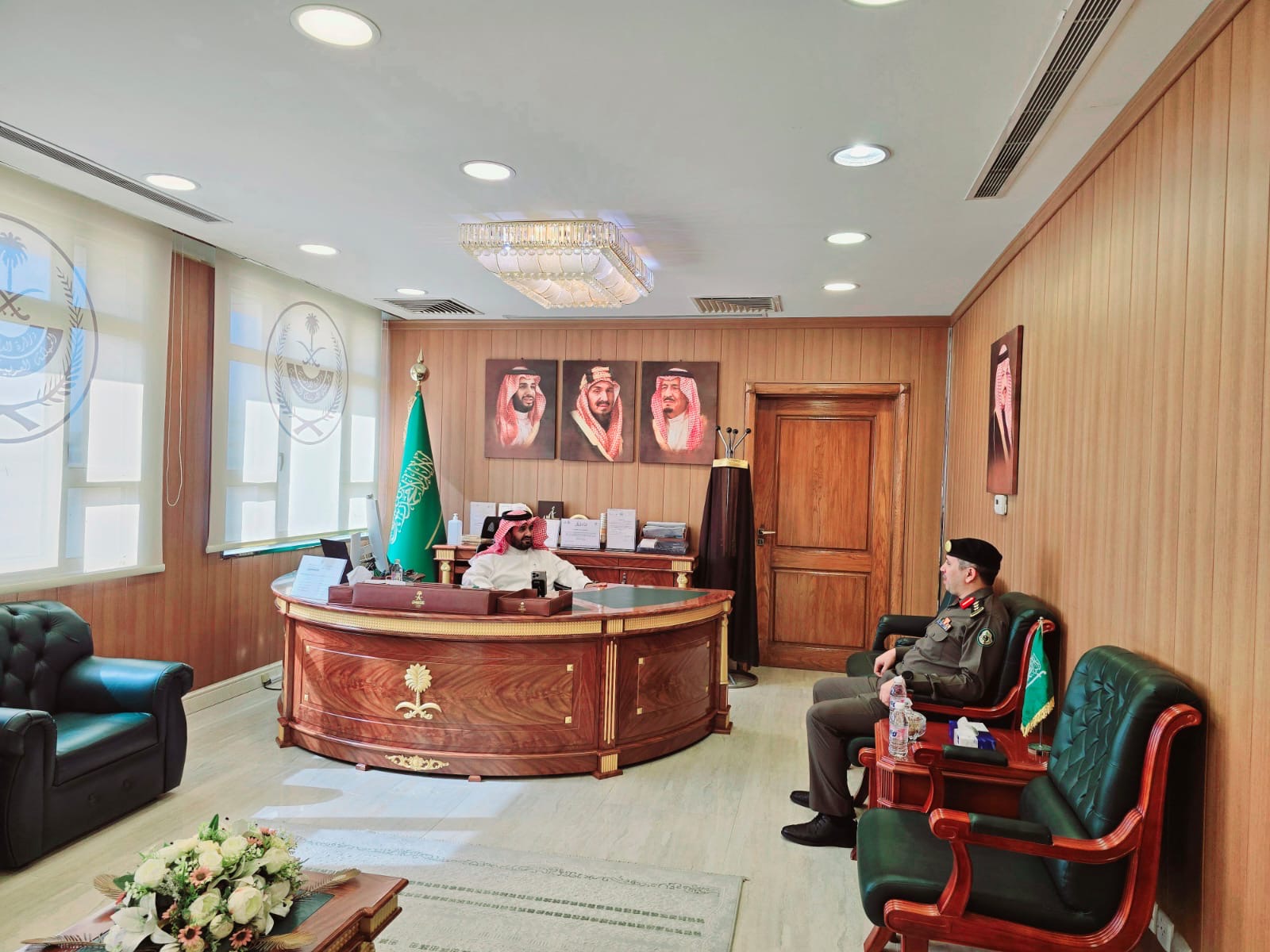 محايل / التقى محافظ محايل محمد بن فلاح القرقاح بمكتبه أمس ، مدير مرور محايل الجديد العقيد راشد بن خلوفه الأحمري .