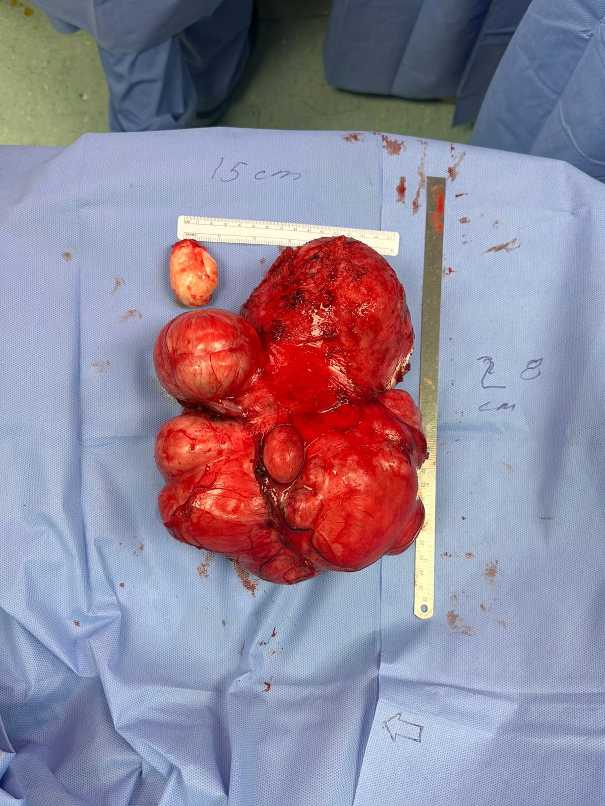 وأشار إلى أن الفريق الطبي قام بالتحضيرات للعملية شملت إجراء فحوصات مخبرية وأشعة دقيقة، بالإضافة إلى معاينة شاملة من قبل قسم التخدير لضمان أعلى معايير السلامة الطبية. وبعد تخطيط دقيق، تم إجراء العملية عبر فتح البطن واستئصال الورم بالكامل مع الحفاظ على الرحم والمبيضين، حيث استغرقت العملية ثلاث ساعات تكللت بالنجاح ولله الحمد.