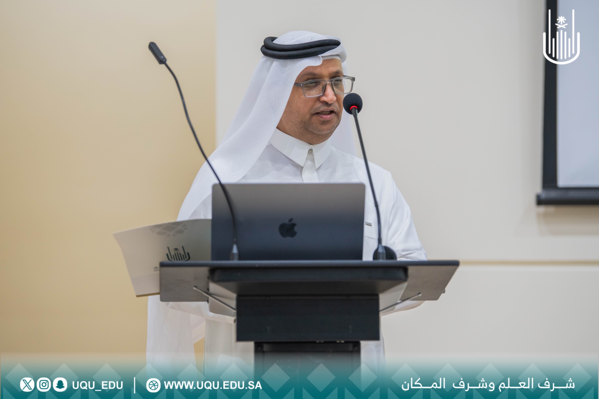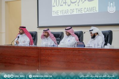 برعاية رئيس جامعة أمِّ القُرى أ.د. معدي بن محمد آل مذهب نظمت كلية اللغة العربية وآدابها ملتقى بعنوان: “الإبل رواحل العرب ولغتهم”بقاعة مكتبة الملك عبد الله في المكتبة المركزية بالمدينة الجامعية في العابدية وقاعة الغزاوي في الزاهر وذلك بالتزامن مع عام الإبل 2024م وأوضح عميد كلية اللغة العربية وآدابها د. سعيد بن محمد آل يزيد أن الملتقى جاء احتفاءً بالقيمة الثقافية الفريدة التي تمثلها الإبل في حياة أبناء الجزيرة العربية منذ فجر التاريخ وإلى اليوم ، مشيرًا إلى أن للإبل حضورًا عظيمًا في القرآن الكريم وبها استفتحت القصائد واختتمت الحكايات وضربت الأمثال في مرافقتها الطويلة للإنسان ووفائها الشديد له وصولاً إلى وقتنا الراهن الذي تبرز فيه الإبل بوصفها شاهدًا حيًّا على الأصالة وعنصرًا ثقافيًّا أساسيًّا من عناصر الهوية السعودية وتضمن الملتقى جلستين حواريتين أدار الجلسة الأولى أ. خالد بن حسن الصابطي وتناولت موضوع:( قافلة الجِمال وقافيةُ الجَمال! [نظر من قوة اللغة إلى الأفق الجمالي الفسيح] ) قدمها أ.د. سعود بن حامد الصاعدي وموضوع:( الإبل مركب العربي وراحلة لغته) عرضٌ موجزٌ لألفاظ الإبل المستعارة في مختلف الحقول الدلالية قدمها أ. أيوب بن حميدان الجهني وبالإضافة إلى موضوع:( ألفاظ الإبل في التّراث اللغوي وما يقابلها مما هو مستعمل اليوم) قدمها د. فارس بن ناصر الفراعنة فيما تناولت الجلسة الثانية المقامة في قاعة الغزاوي بالزاهر موضوع:( الإبل الراحلة بين الحضور والغياب قراءة في مشهد الهاجرة) قدمتها د. أسماء بنت عبد الله الزيد وموضوع:( الإبل في صورة الظعائن مقاربة في تقاليد القصيدة الجاهلية) قدمتها د. نجوى بنت عبد العزير بناني بالإضافة إلى موضوع:( رموز الإبل في الموروث العربي) قدمتها د. شيماء بنت محمد توفيق وأدارت الجلسة أ. بدرية عيضة المالكي .