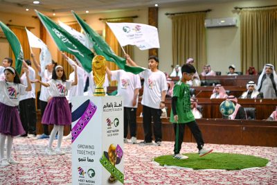 وقد تفاعلت المدارس في المنطقة مع المناسبة من خلال تنفيذ العديد من الأنشطة مثل استثمار الإذاعة المدرسية للحديث عن الحدث الوطني الكبير وإجراء حوارات مع الطلاب والمعلمين حول الاستضافة، وتنظيم عروض رياضية واستعراض مهارات الطلاب في كرة القدم، إضافة إلى إقامة دوري كرة القدم داخل المدارس تحت شعار “معًا ننمو”.