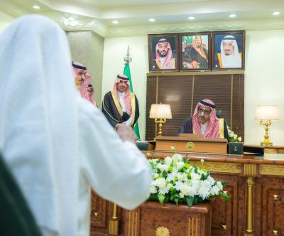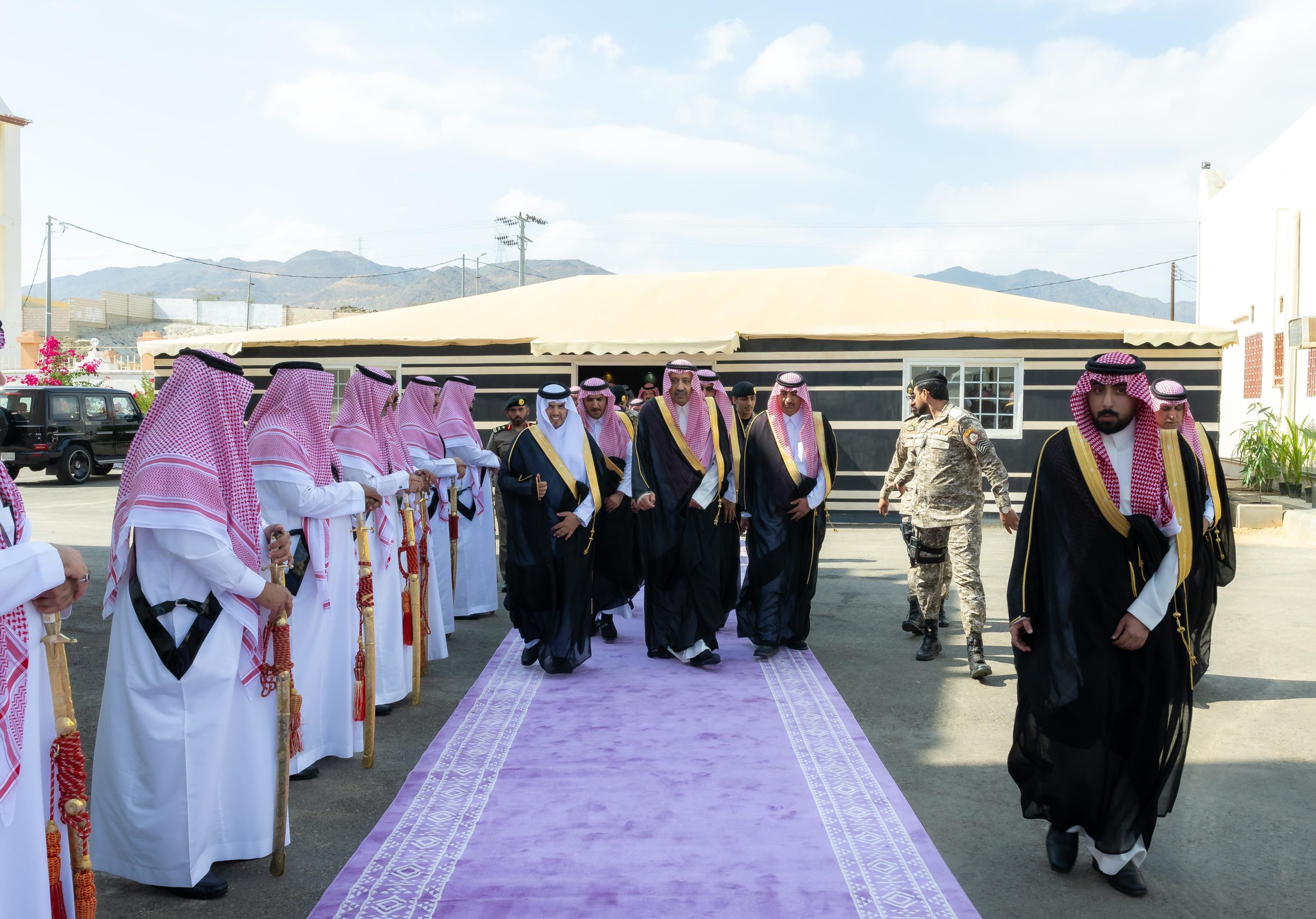 واطلع سموُّه لدى وصوله على الخدمات المقدمة للمواطنين، ثم التقى بمقر المحافظة مشايخ القبائل ومديري القطاعات الحكومية.