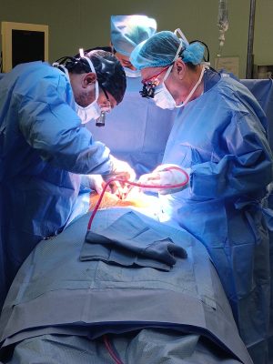 تمكن – بفضل الله – فريق طبي متخصص في جراحات القلب بمركز القلب التخصصي في مجمع الملك عبدالله الطبي عضو تجمع جدة الصحي الثاني من إعادة بناء جدار القفص الصدري الأمامي لمريض في العقد الخامس من العمر بعملية جراحية طارئة باستخدام أحدث المعدات الطبية وفي التفاصيل أدخل المريض لمركز القلب التخصصي بالمجمع الطبي كحالة إنقاذ حياة طارئة وفور وصوله باشر فريق جراحات القلب الحالة للكشف عليه وإجراء له كافة الفحوصات الطبية اللازمة الإشعاعية والتحاليل المخبرية التي بينت وجود التهاب بكتيري حاد وتجمع صديدي في جدار القفص الصدري الأمامي وهبوط في الدورة الدموية وتسمم في الدم وبعد دراسة الحالة قرر الفريق الطبي المعالج بقيادة الدكتور أحمد قطبي استشاري جراحة القلب ومساعده الدكتور أحمد خضور استشاري جراحة القلب بضرورة التخدير ووضعه على التنفس الصناعي وأدوية دعم القلب والدورة الدموية والتأكد من جاهزيته لنقله لغرفة العمليات وذلك لإجراء عملية جراحية طارئه تم فيها فتح الصدر وإزاله كامل المواد المستخدمة جراحياً في العملية الأساسية من أسلاك معدنية والمصابة بالالتهاب ثم تركيب جهاز الشفط المستمر حسب المقاييس العالمية لعلاج الجروح المماثلة لتطهير الجرح من الالتهابات ثم نقله إلى أجنحة العناية القلبية تحت الملاحظة الطبية الفائقة والمتابعة وتقديم الرعاية الصحية له وبعد شهر تم التأكد بأن الجرح الصدري استوفى الشروط العلمية وأثبت الجاهزية الطبية لإستكمال المرحلة النهائية من الخطة العلاجية لإجراء عملية جراحية أخرى بأحدث التقنيات الطبية الحديثة والتي تم فيها إعادة بناء جدار القفص الصدري الأمام بإستخدام الألواح والأسلاك المعدنية الطبية، وتكللت العملية بالنجاح التام – ولله الحمد – بعدها نقل المريض إلى أجنحة التنويم وبعد أن تماثل للشفاء تم كتابة أذن الخروج الطبيعي له ليغادر المستشفى وهو يتمتع بصحة جيدة ليتابع حالته الصحية في عيادات القلب الخارجية وفق حجوزات مواعيد المراجعات المجدولة له .