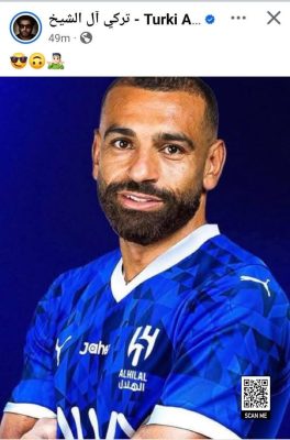 وألمح المستشار تركي آل الشيخ، رئيس هيئة الترفيه، إلى قدوم الفرعون المصري، لينضم إلى كتيبة النجوم العالميين بالدوري السعودي، عبر بوابة الهلال، بعدما نشر على صفحته الرسمية بموقع “فيسبوك”، صورته مرتديا قميص “الزعيم”.