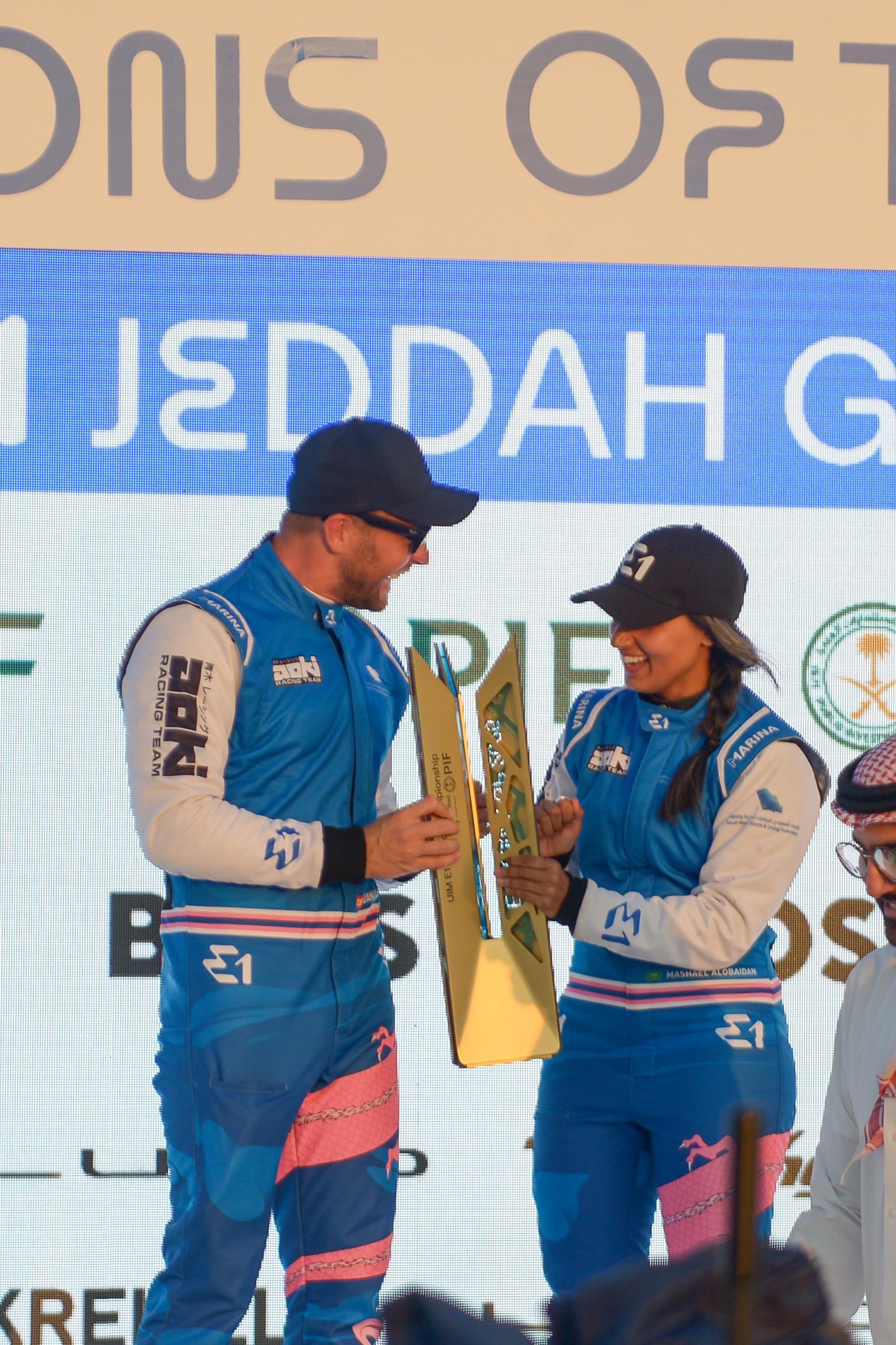 وفي ختام الحدث، توّج معالي نائب وزير الرياضة الأستاذ بدر بن عبدالرحمن القاضي، فريق “أوكي” الذي يملكه ستيف أوكي، بكأس المركز الأول، ويمثله كل من الإسباني داني كلوس والسعودية مشاعل العبيدان، وتوّج صاحب السمو الملكي الأمير سلطان بن فهد بن سلمان آل سعود، رئيس مجلس إدارة الاتحاد السعودي للرياضات البحرية والغوص، فريق رافا بكأس المركز الثاني، والذي يملكه نجم التنس السابق رافاييل نادال، ويمثله الفرنسي توم تشيابي والإسبانية كريس لازاراجا، فيما قدّم الدكتور رافاييل تشيولي؛ رئيس الاتحاد الدولي للزوارق السريعة، كأس المركز الثالث لفريق بلو رايزينج، والذي يملكه نجم الكريكت فيرات كوهلي، ويمثله كل من الأمريكي جون بيترس والجامايكية سارا ميسير.