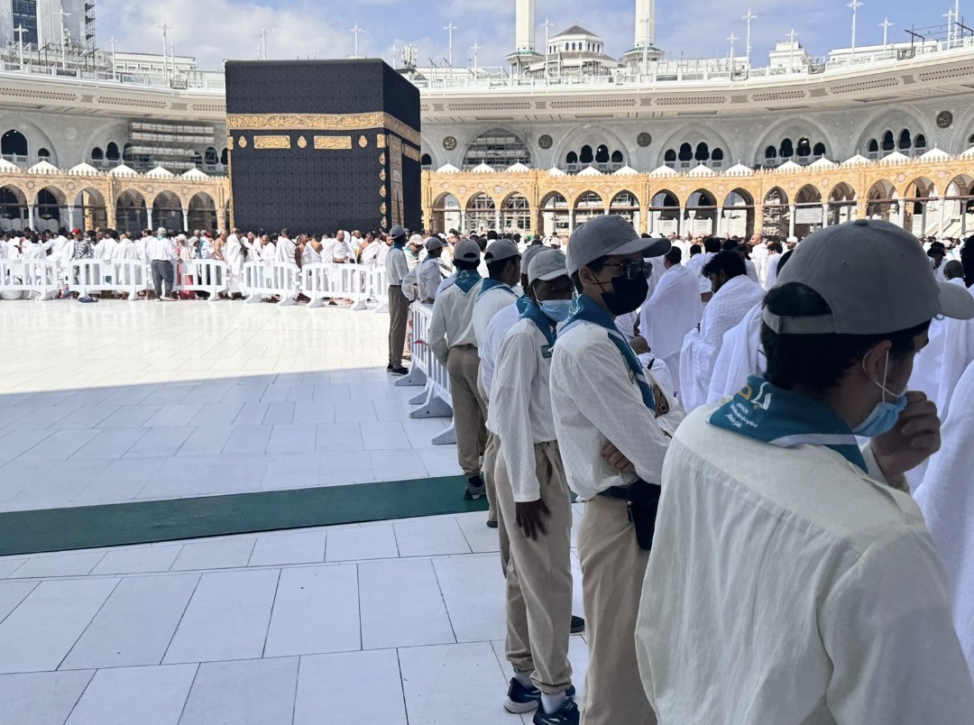 شارك اليوم الجمعة 1446/8/1 أكثر من 80 طالب وطالبة من فتيان وفتيات كشافة إدارة تعليم منطقة مكة المكرمة، في تقديم خدماتها الكشفية التطوعية والإنسانية للمصلين والمعتمرين وضيوف بيت الله الحرام قبل وأثناء وبعد صلاة الجمعة بحضور وإشراف قادة وقائدات الفرق الكشفية بعدد من مدارس مكة المكرمة للمرحلة الثانوية التعليمية “بنين” و “بنات” بإشراف ومتابعة من رئيس النشاط الكشفي بتعليم مكة الأستاذ زياد بن حسن قدير وبحضور كذلك المشرفة التربوية والقائدة الكشفية بتعليم مكة الاستاذة عبير بن عبيد الغريبي .