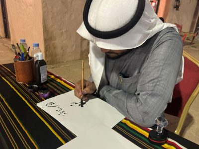 وكانت هنالك مشاركة لكبير الخطاطين بالمنطقة الخطاط يحيى كريري بركن لمشاركة الحضور ابداع أنامله في اهدا مخطوطاته للحضور .