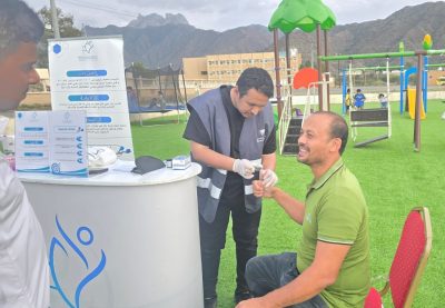 وقد بلغ عدد المستفيدين 135 مستفيد بالإضافة إلى اكتشاف 5 حالات سكري و 3 حالات ضغط الدم وتم صرف أجهزة قياس السكر للمستفيدين وإبلاغ جميع الحالات بمراجعة المراكز الصحية للمتابعة مع العيادات المختصة
