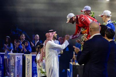 وقلّد صاحب السمو الملكي الأمير خالد بن سلطان العبدالله الفيصل؛ رئيس مجلس إدارة الاتحاد السعودي للسيارات والدراجات النارية، وشركة رياضة المحركات السعودية، البريطاني تايلور بارنارد سائق فريق “نيوم ماكلارين” بالمركز الثاني، ونال البريطاني جيك هيوز سائق فريق “مازيراتي إس إم جي” المركز الثالث، في الوقت الذي فاز فيه فريق نسيان المركز الأول لفئة الفرق.
