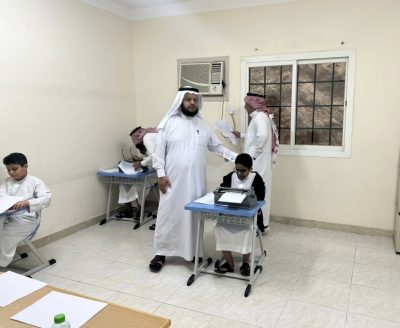 حيث أطلع ” الصاعدي” خلال جولته على عمل وسير اللجان المخصصة لإختبارات الطلبة في القاعات ، وكما اطمأن “الصاعدي” على سير الاختبارات في لجان الإستماع الفردية ، وتوزيع أعداد الطلاب على كل لجنة وتوزيع اللجان الإشرافية من خلال المراقبة ، وتذليل العقبات التي تواجه الطلاب أثناء أداء الاختبارات . والتأكد من قراءة نماذج الاسئلة التي تم إعدادها بطريقة (برايل) لمن يستطيع القراءة والكتابة من الطلاب ، وكذلك جهاز (مبصر) لمن تستدعي ظروفهم من الطلبة وجود مساعد لهم .