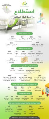 وحول أبرز المميزات التي أعجبتهم في قطار الرياض، قال 29% نظافة المحطات وحسن بناءها، و24% سرعة الرحلات، و23% انتظام المواعيد، و22% التكلفة المالية، و2% أسباب أخرى.