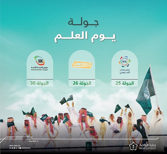 اعتمد الأمير عبدالعزيز بن تركي الفيصل، وزير الرياضة رئيس اللجنة الأولمبية والبارالمبية السعودية، إطلاق تسمية “جولة يوم العلم” على الجولة المقبلة من المنافسات الكروية السعودية.