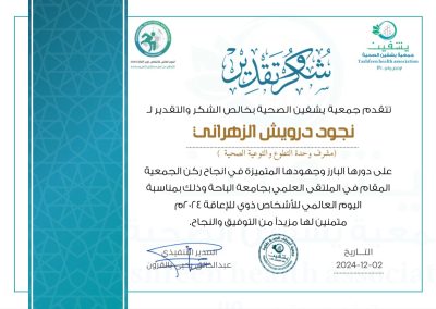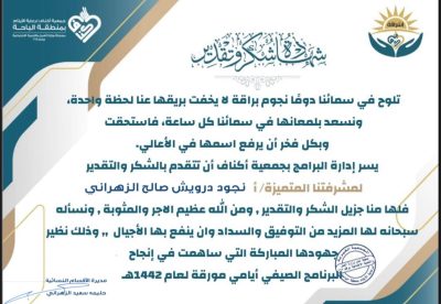 أقول لهم شكرًا على جهودكم المتواصلة وعطاءكم بلا حدود. أنتم مصدر قوة وإلهام لكل من حولكم، وعملكم التطوعي له تأثير كبير في المجتمع. استمروا في تقديم العطاء، فكل خطوة تقومون بها تحدث فرقًا، وتذكروا أن ما تقدموه يعود إليكم بأضعافه من رضا داخلي.