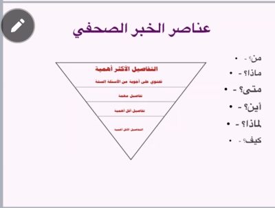 الورشة التدريبية تحدثت كذلك عن تعريف الخبر الصحفي، وتعريف التقرير الصحفي (يعطي معلومة جديدة فقط، بشكل سريع ومباشر) ويجاوب على من؟ ماذا ؟ متى؟ أين؟ ولماذا؟ وكيف؟ وغالبا يكون قصير ومباشر عادة من 100 إلى 300 كلمة ،ويستخدم أسلوب حيادي تماماً، بدون تحليل أو رأي. ثم تحدث المحاضر عن ماهو الخبر الصحفي. والفرق بين التقرير والخبر ، وماهو التقرير (صحافة البيانات)