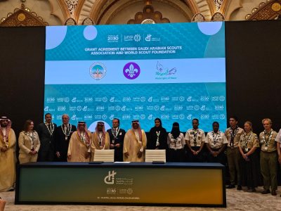 شهد مؤتمر مبادرة القدرات البشرية المقام حالياً في دورته الثانية بالرياض، توقيع اتفاقية تجديد تمويل مبادرة “رسل السلام” العالمية على مدى العقد القادم، بقيمة 50 مليون دولار أمريكي من حكومة المملكة العربية السعودية، بهدف إلهام وتشجيع أكثر من 100 مليون كشاف للعمل كرسل سلام في 176 دولة.
