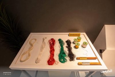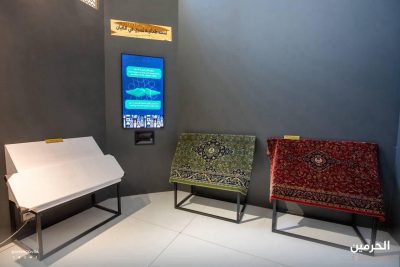 أما كابينة حاسة اللمس فجاءت بعنوان “لمسةُ طمأنينة تسري في الكيان”، وعرضت قطعًا من سجاد الحرمين وتدرج تطوره، إلى جانب قطعة من رخام التاسوس المعروف ببرودته الدائمة، وأدوات وخيوط حياكة كسوة الكعبة المشرفة، مع توضيح تفصيلي لمكونات التطريز من الحرير والفضة المطلية بالذهب.