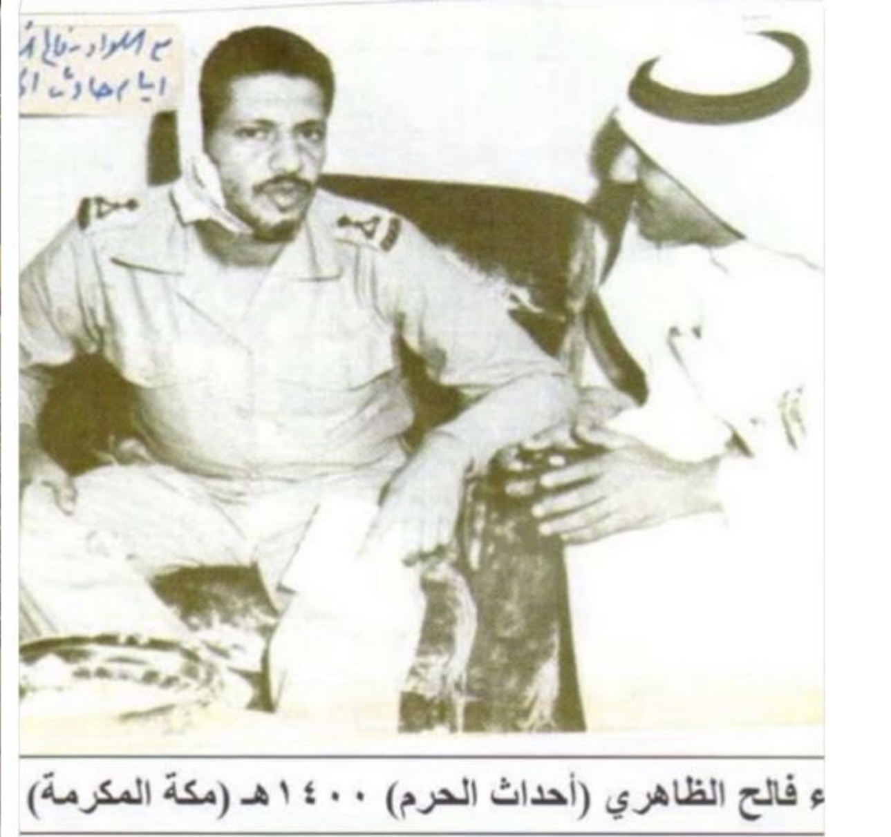 ويستذكر الحسيني، أول حوار صحفي أجراه مع اللواء فالح الظاهري – أحد أبرز الأسماء الأمنية آنذاك – بعد مضي أربعة عقود من تلك الحادثة، موثقًا لقاء جمعه به في منزله بمكة المكرمة عام 1440هـ، بصورة تؤرّخ لهذا اللقاء التوثيقي النادر.