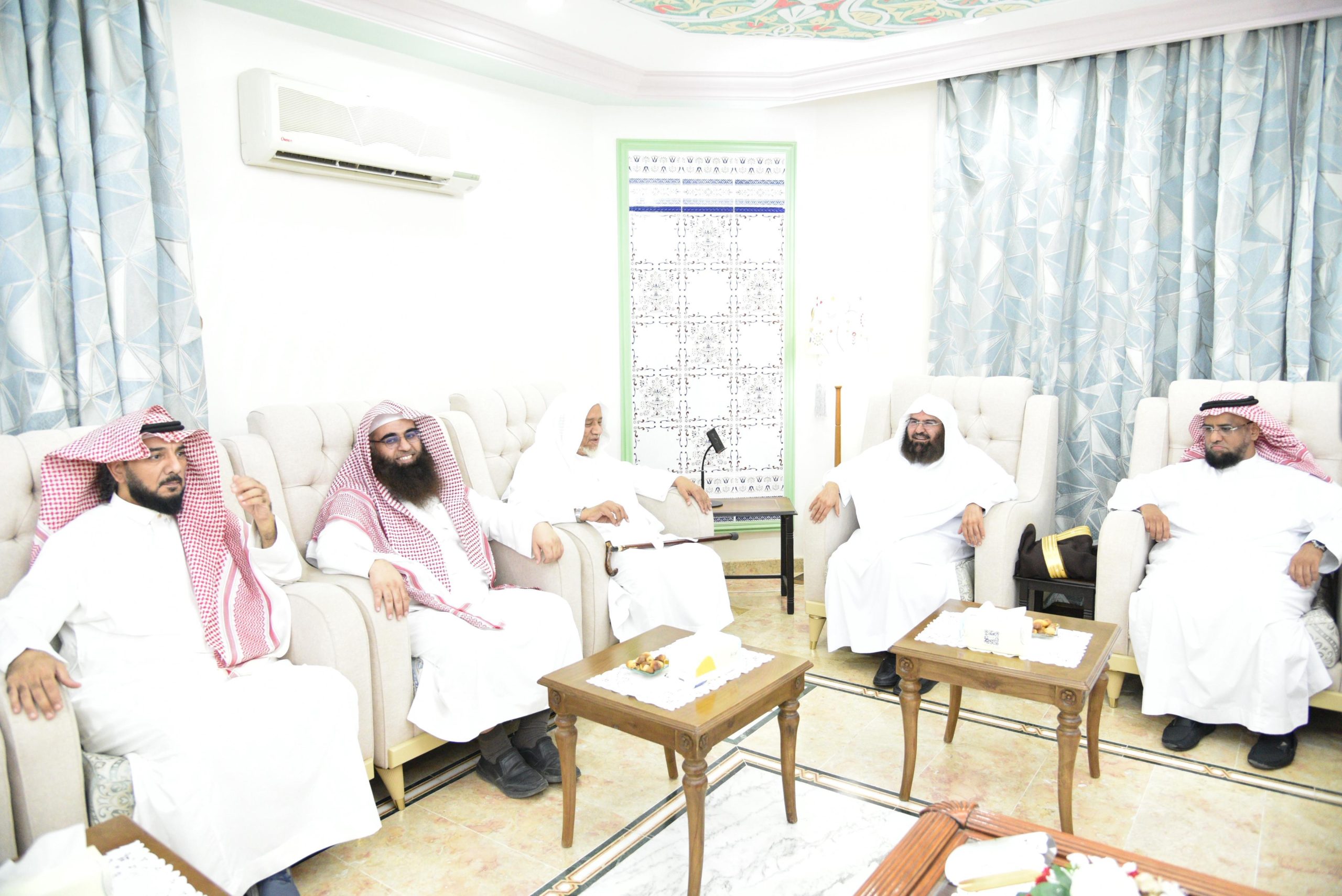 زار معالي رئيس الشؤون الدينية بالمسجد الحرام والمسجد النبوي، الشيخ الأستاذ الدكتور عبدالرحمن بن عبدالعزيز السديس، فضيلة شيخ قرّاء المسجد النبوي، الشيخ إبراهيم الأخضر، في منزله بالمدينة المنورة، وذلك ضمن برنامج “زيارة الأئمة والمؤذنين والمدرسين بالمسجد النبوي”، الذي يهدف إلى تكريم أصحاب الفضيلة ممن أفنوا أعمارهم في خدمة كتاب الله وضيوف الحرمين الشريفين.